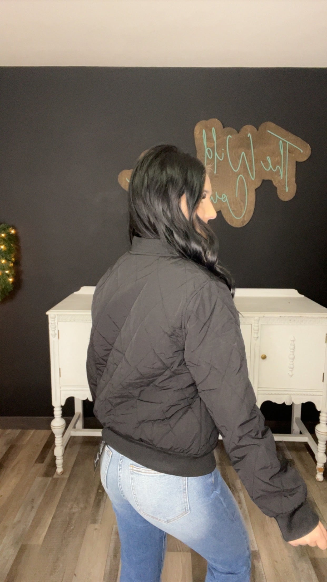 Black Quilted Bomber Jacket