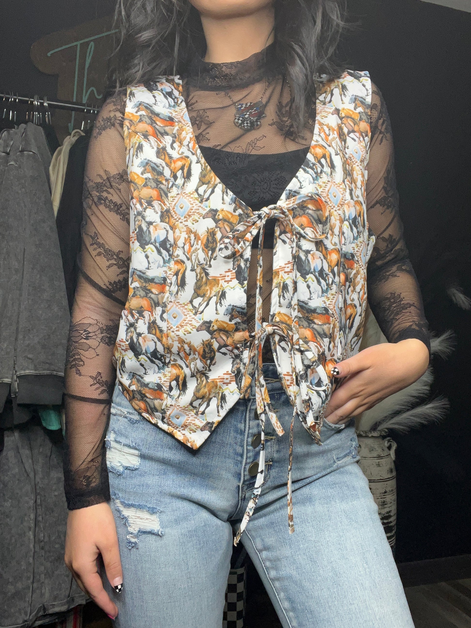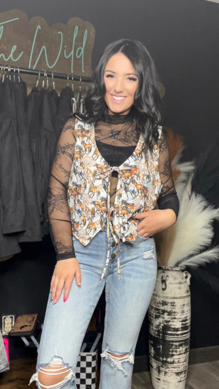 Trendy Front Tie Buckaroo Vest -Vest -front secure hooks