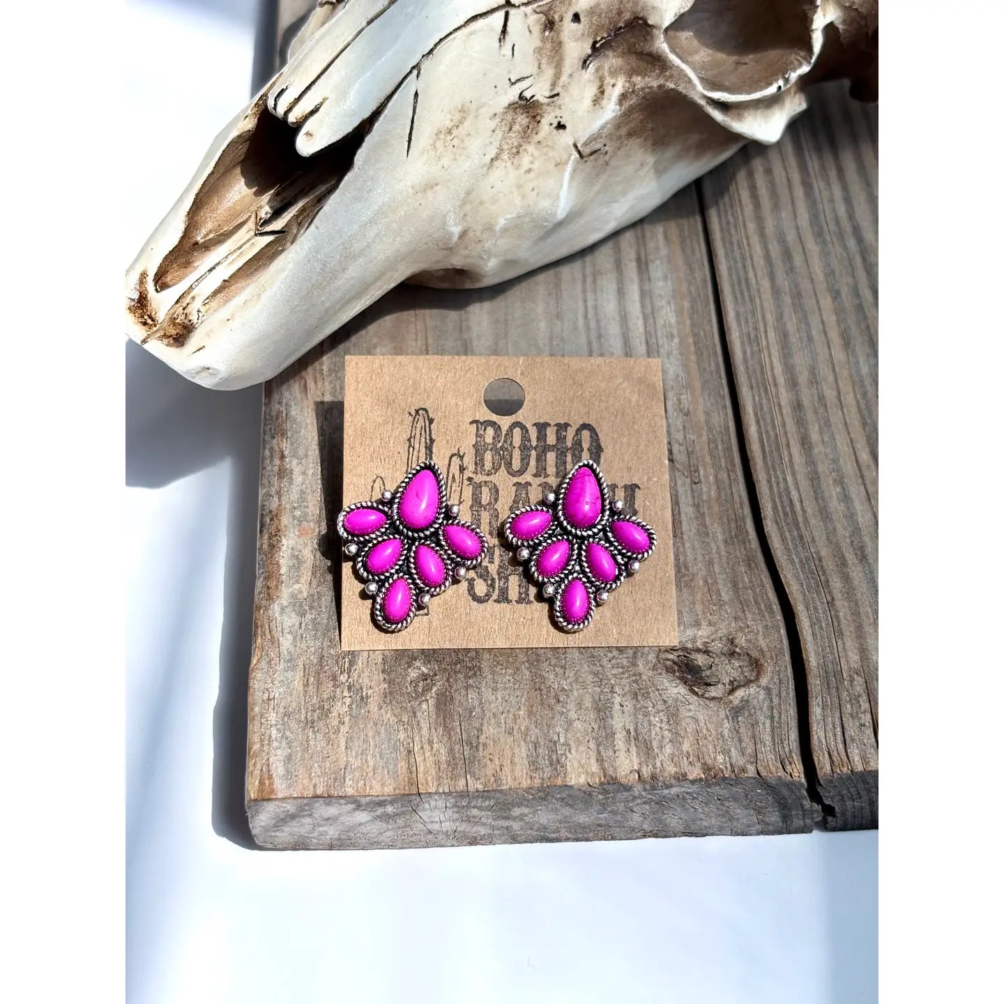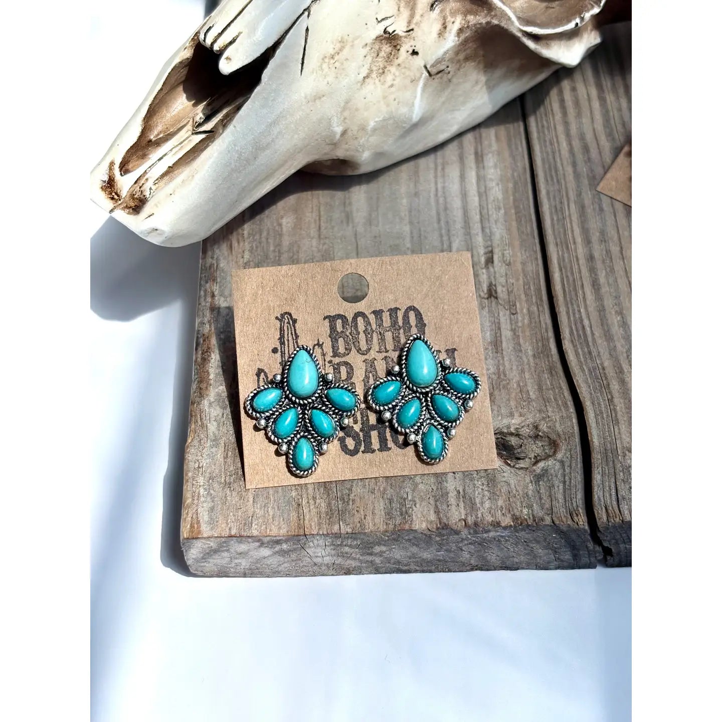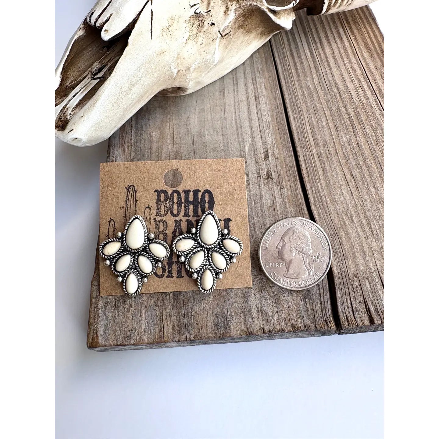 Western Semi- Genuine Stone Stud Earrings Size: 1" Post Back Brushed Silver, Semi-Genuine Stone Lead Compliant