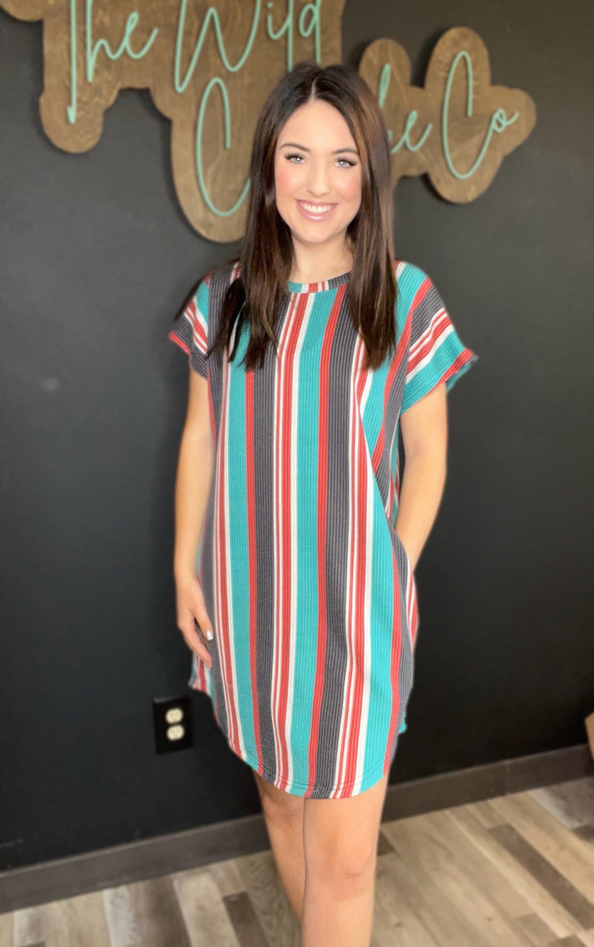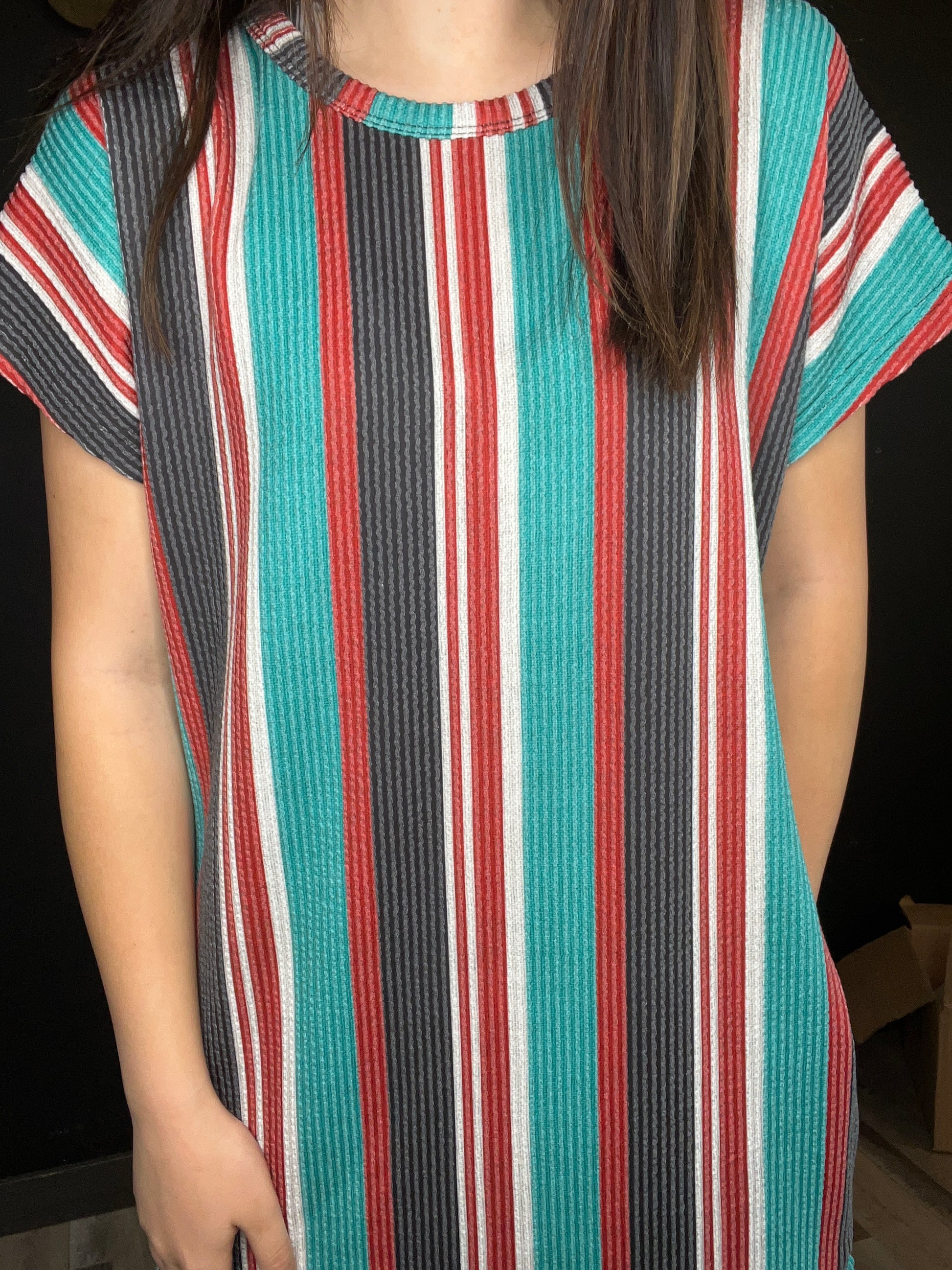 Get ready to swoon over our Oh My Darling Dress! With its vintage western stripes and flattering dress shape, this dress is perfect for dressing up or down. Made from comfy waffle knit material, you'll feel both cute and comfortable. P.S. IT HAS POCKETS!!