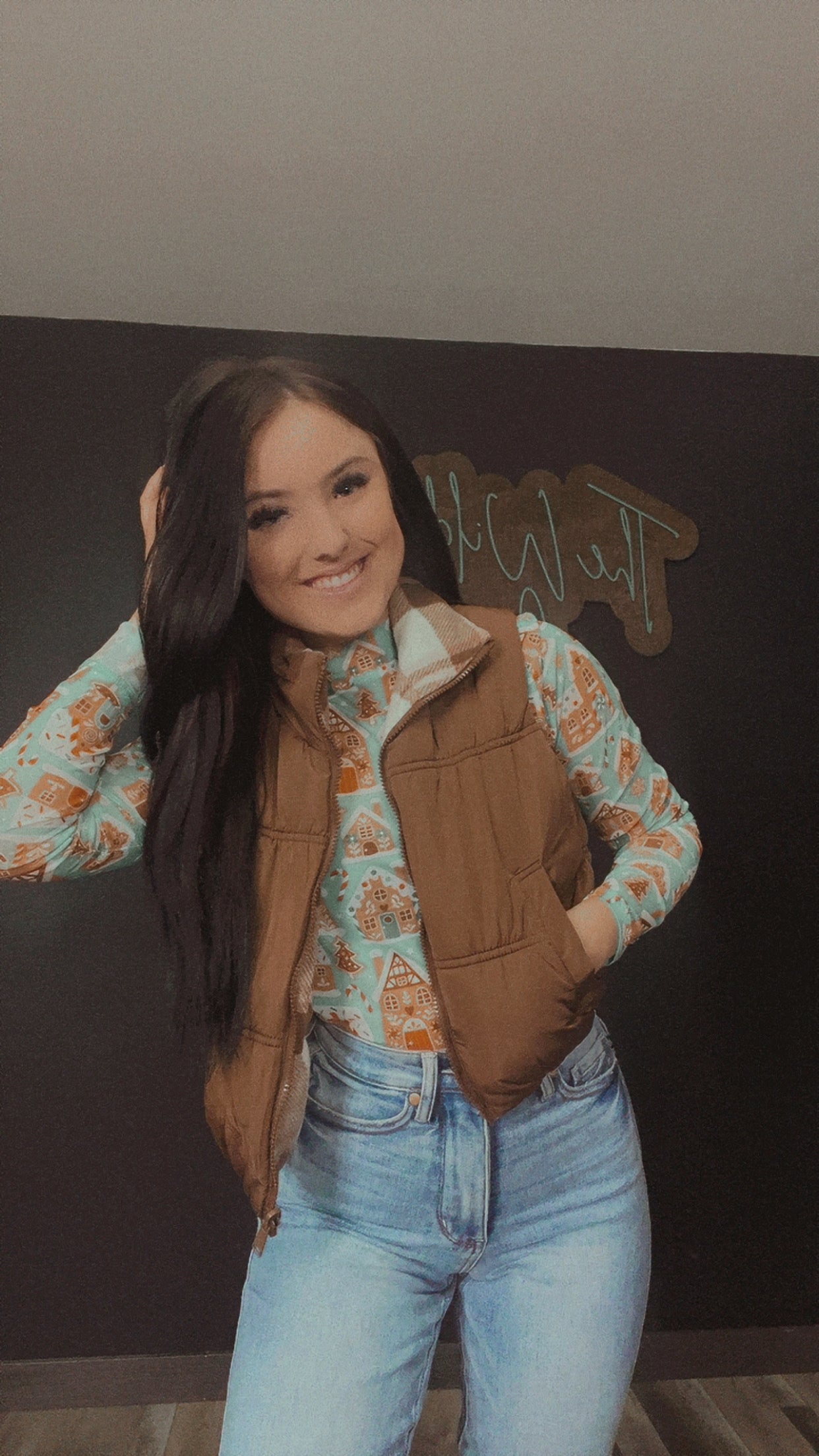 Featuring the cutest gingerbread house design, this festive mesh is perfect for layering or making a statement all on its own. 💕
